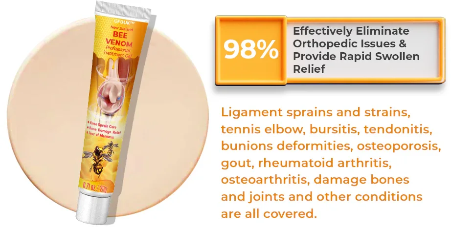 As an orthopedic surgeon, I recommend patients who are experiencing issues with their bones and joints use this Bee Venom Professional Treatment Gel. Our GFOUK™ New Zealand Bee Venom Professional Treatment Gel, which contains a variety of minerals, vitamins, and organic compounds, could help with the recovery from bone-related wounds and encourage general joint health.