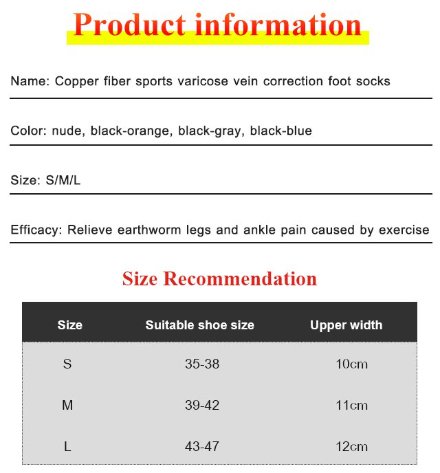 Copper Fiber Sports Varicose Vein Correction Foot Protection Socks