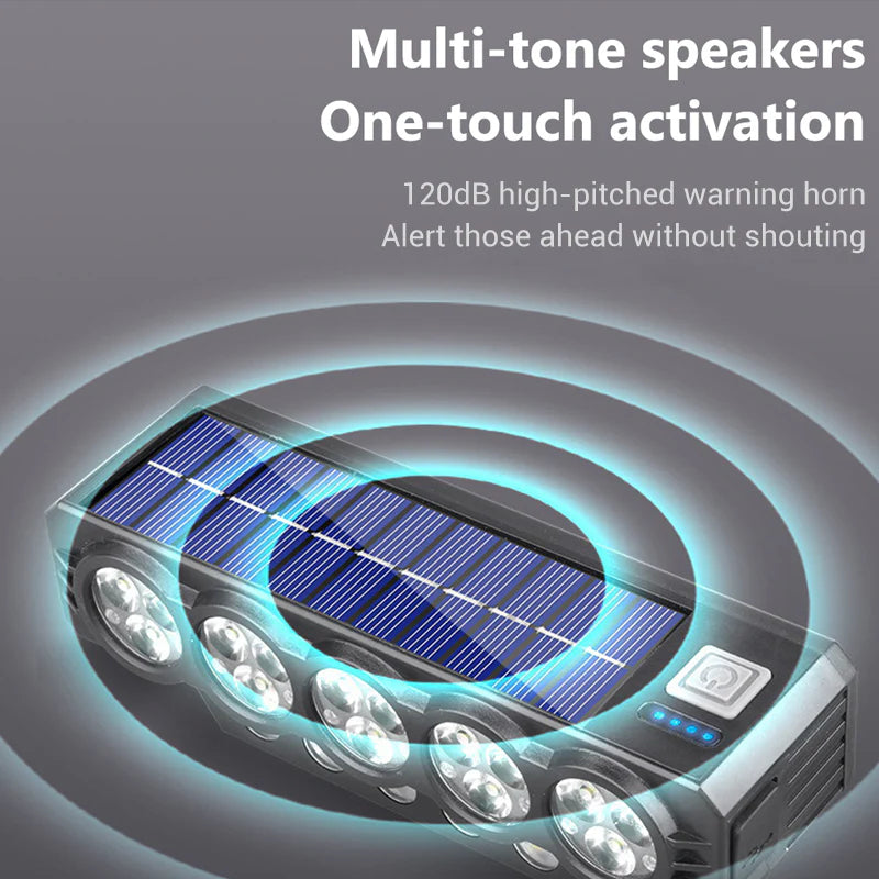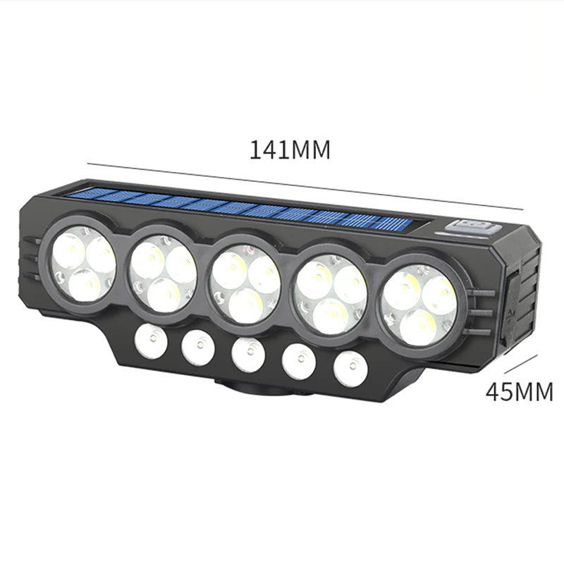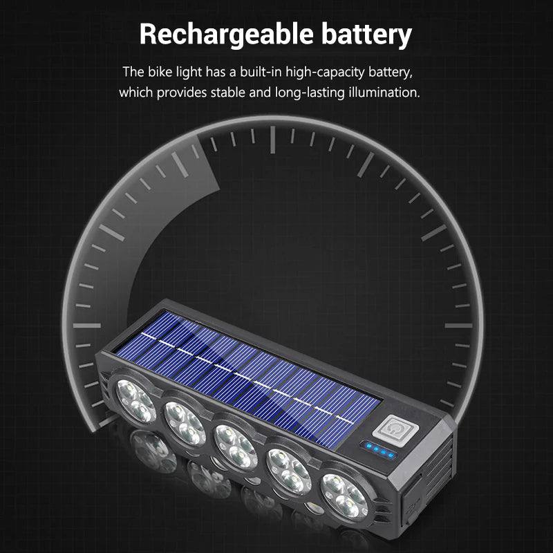 Soldriven och USB-uppladdningsbar cykellampa