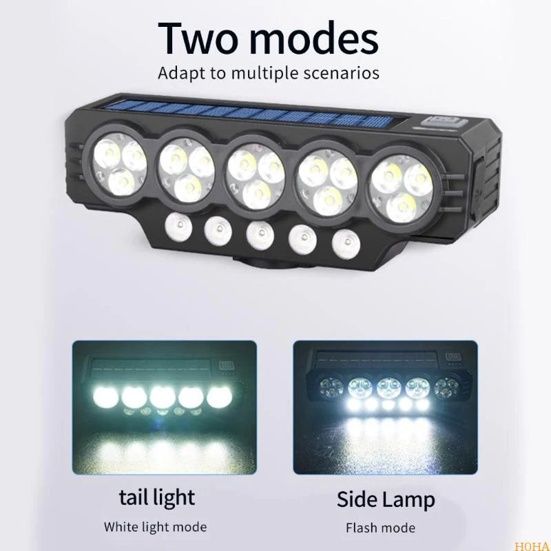 Solar charging is a supplement; for optimal performance, fully charge the light via Type-C before first use.